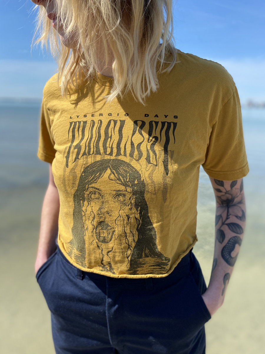 Not for the casual day-tripper. Black discharge print on antique gold Next Level 3600 shirts.